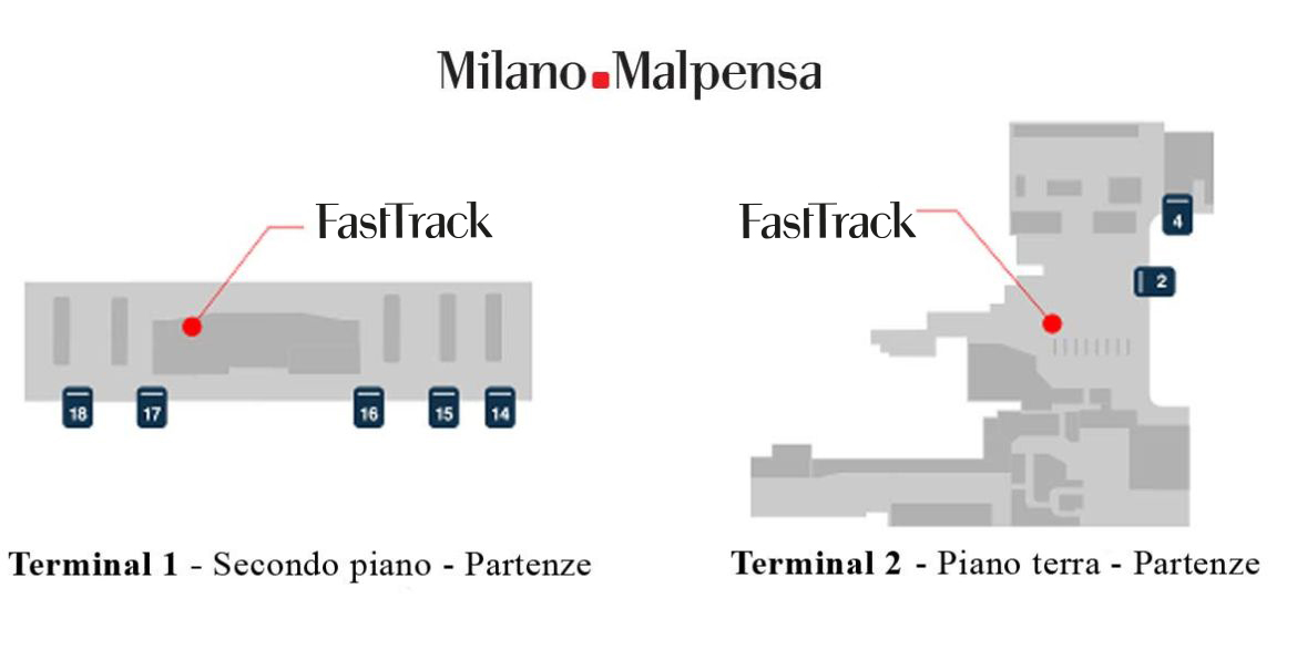 At Malpensa T2, proceed to the Fast Track turnstiles and scan your electronic ticket to access the security checks.